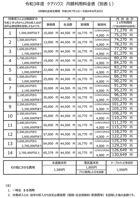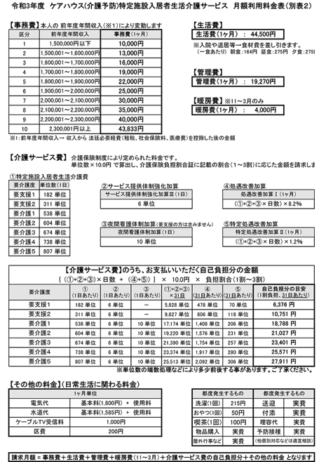 【令和3年度】ケアハウス(介護予防)特定施設入居者生活介護サービス月額利用料金表